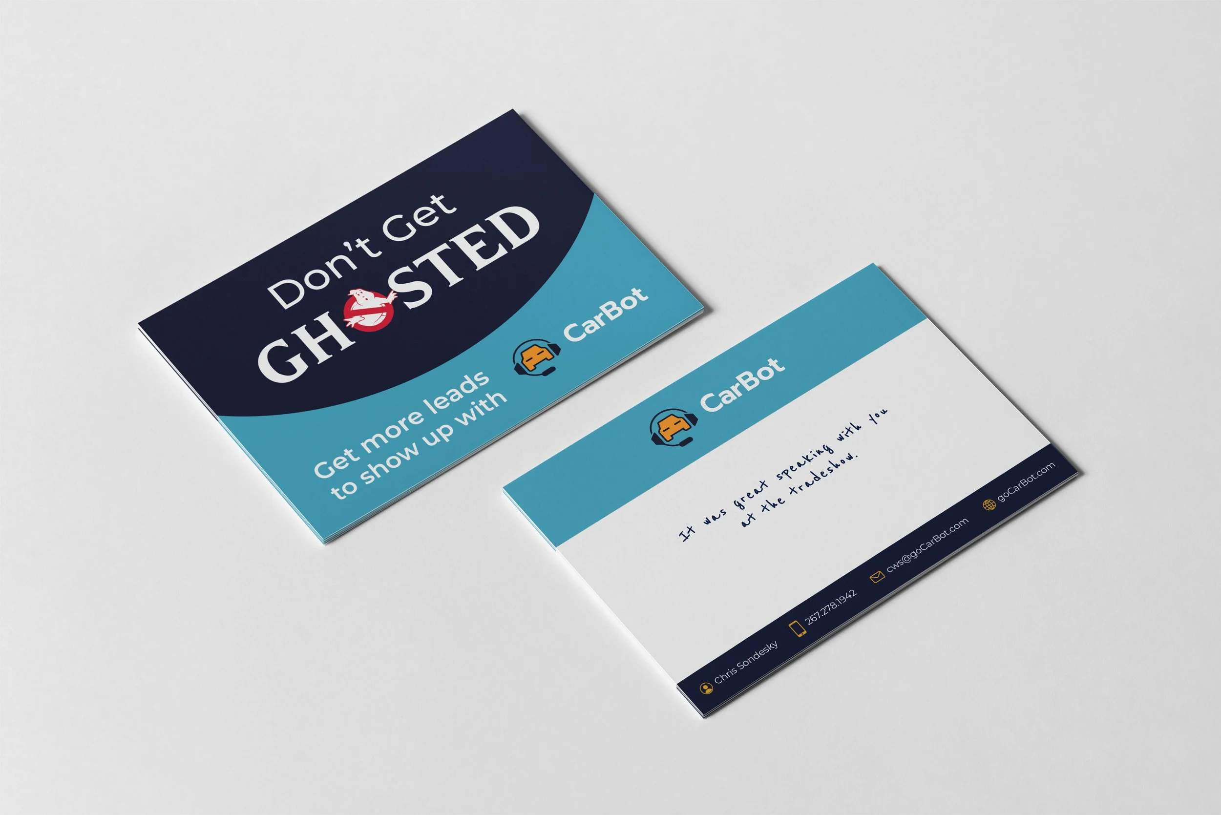 We developed various corresponding Ghostbusters-branded assets - from standing banners and podium wraps, to take-away brochures and postcards, plus TONS of CarBot swag. We developed corresponding digital assets, including Google display ads, aimed at our targeted list of event attendees, pre- and post-event social posts and a four-part follow-up email drip. We also overhauled the content on both the CarBot and BDC Pros homepages for increased clarity around our service offering, once these new leads landed on our site.