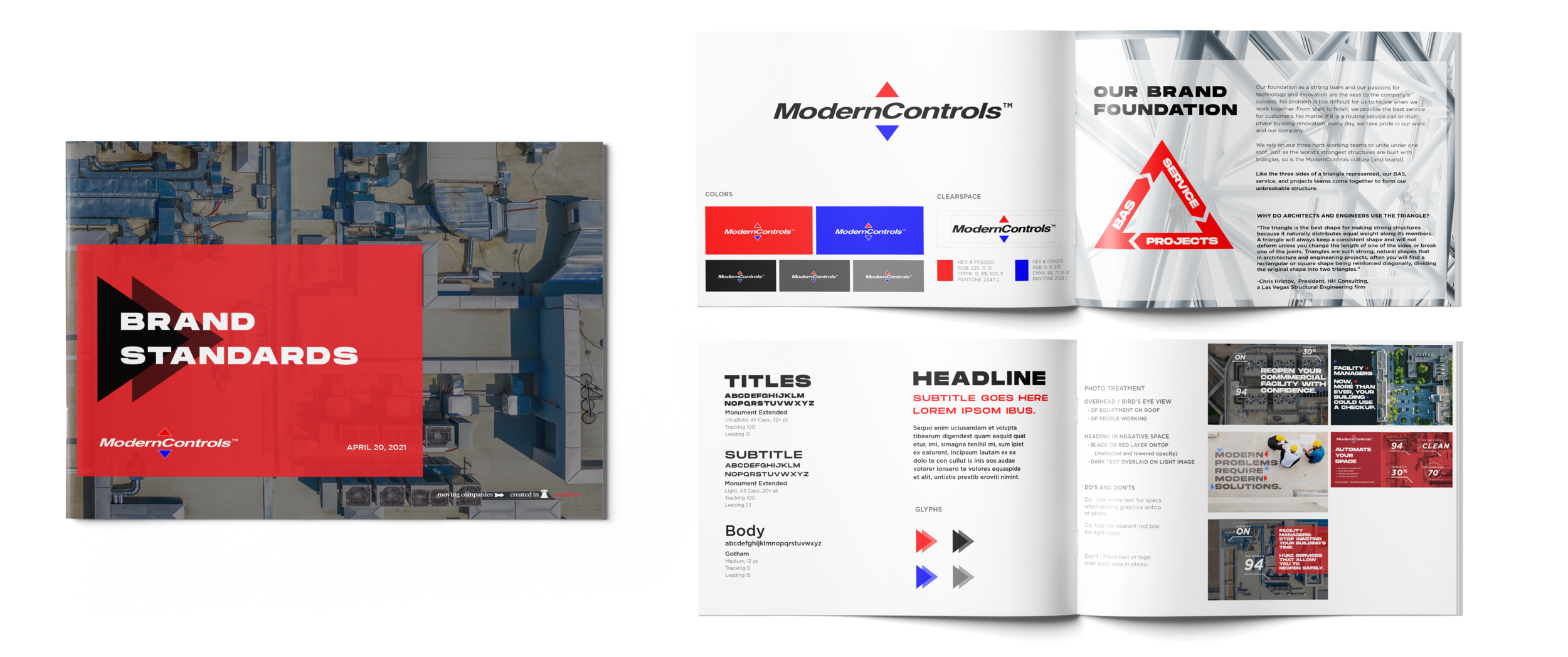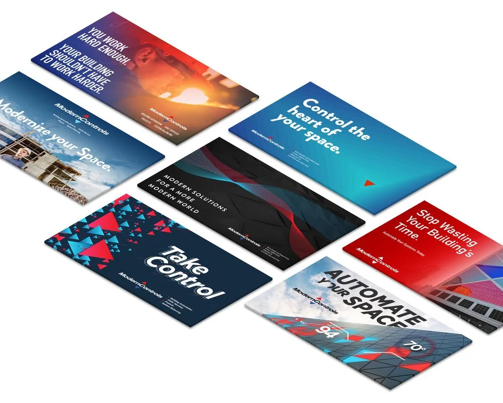 The team at The Moving Company completed a variety of work to launch ModernControls’ pilot marketing program and position the company for better brand recognition and customer satisfaction. First, The Moving Company performed a design-style exploration to evaluate the current brand. Through exploring three distinct photography and type treatment directions, The Moving Company was able to find one that fit the vision of the leadership team for the company. Once the visual brand identity was defined, The Moving Company worked on marketing elements such as: