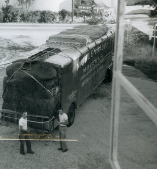 First household goods storage warehouse constructed. Peggy Muhlenhaupt joins her husband in business. Company’s name is changed to “Muhlenhaupt Movers” and becomes an affiliate of nationwide Stevens Van Lines (later U.S. Van Lines) to facilitate interstate moves.